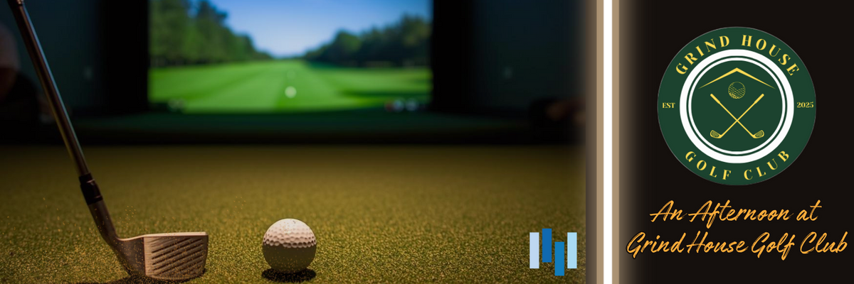 Join us at Grind House Golf Club, an indoor golf lounge. The afternoon will include appetizers and drinks in a comfortable, social setting. Some guests may choose to spend time in the simulators, while others may prefer to relax, visit, and enjoy the space.